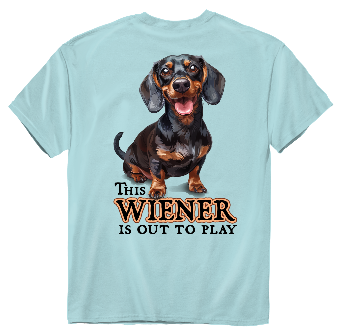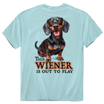 American Fido Collection 'Out to Play Wiener' 100% Ringspun Cotton T-Shirt in Purist Blue