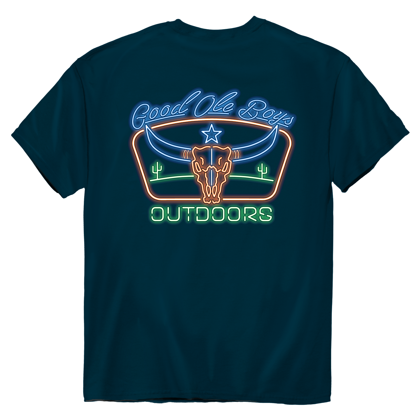 Good Ole Boys Collection ' Neon Bull Skull ' Comfort Colors T-Shirt in Navy