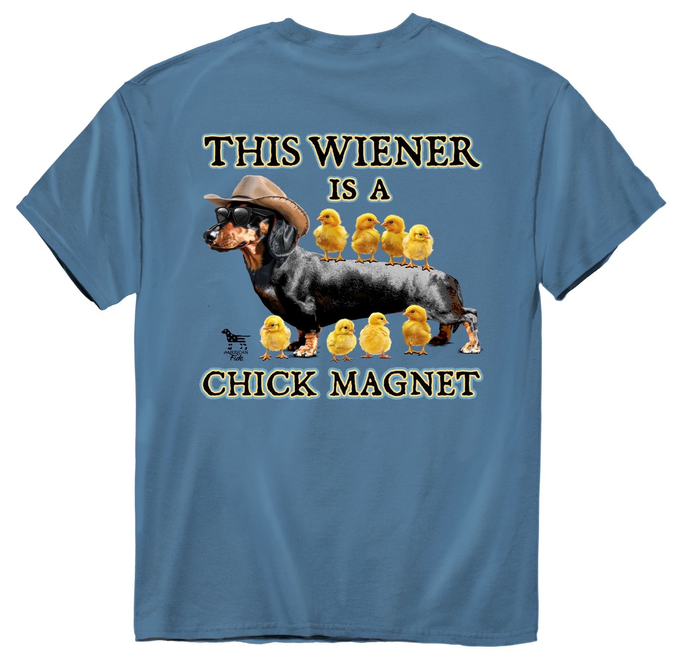 American Fido Collection ' Chick Magnet' 100% Ringspun Cotton T-Shirt in Slate Blue