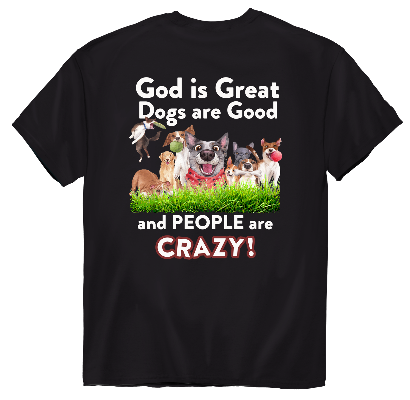 American Fido Collection 'Dogs Are Good' 100% Ringspun Cotton T-Shirt in Black.