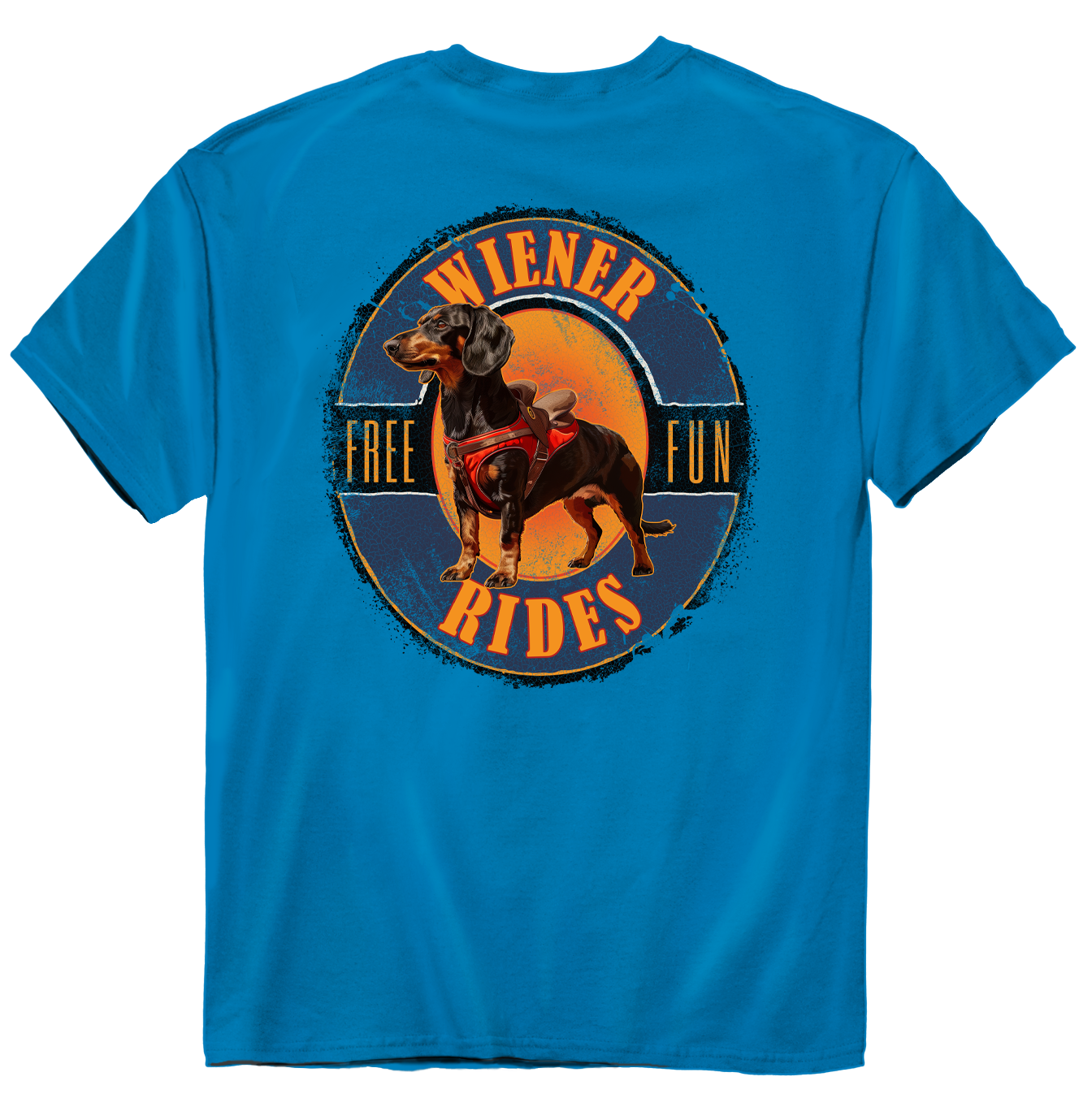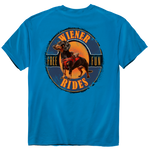 American Fido Collection ' Wiener Rides' 100% Ringspun Cotton T-Shirt in Sapphire Blue