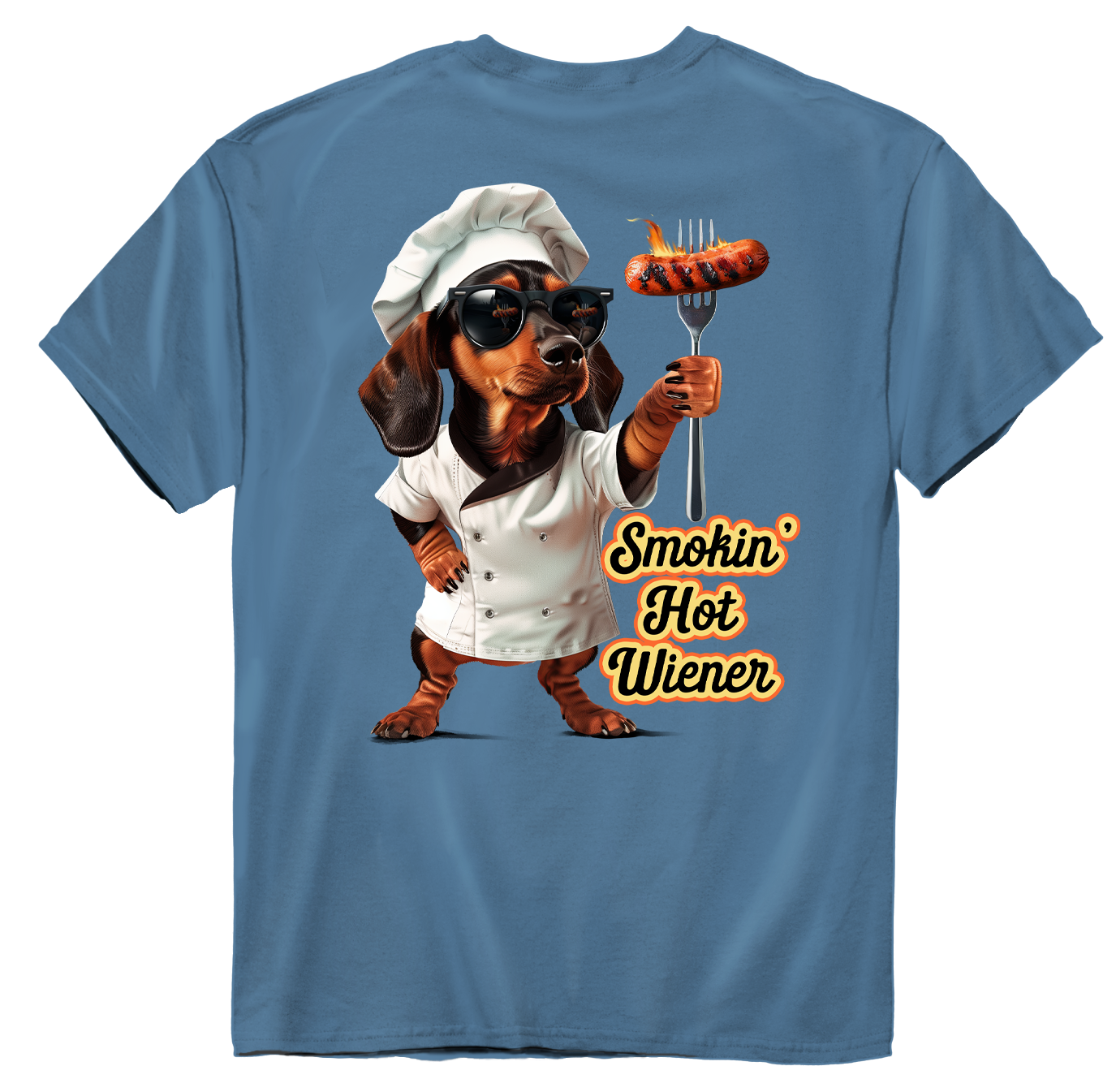 American Fido Collection 'Smokin' Hot Wiener' 100% Ringspun Cotton T-Shirt in Slate Blue