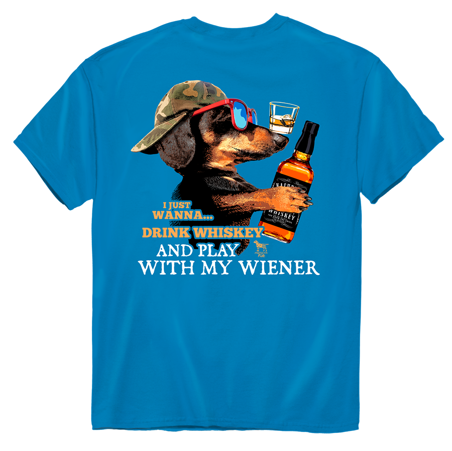American Fido Collection ' Whiskey Wiener' 100% Ringspun Cotton T-Shirt in Turquoise